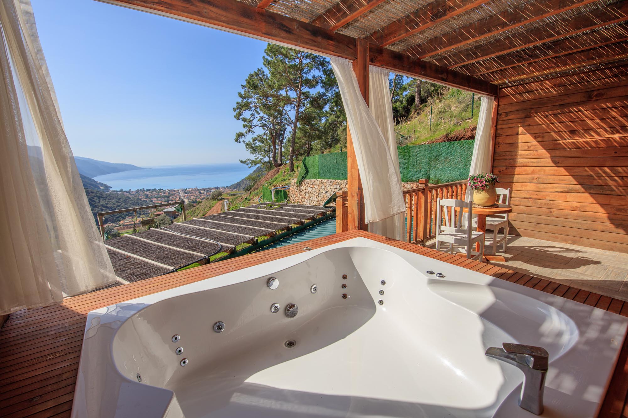 Private havuzlu suite odalarımız Ölüdeniz-Babadağ manzaralıdır. Lüks ve konforun birleştiği odalarımız mükemmel bir tatil imkanı sunar. Uyanıp adımınızı attığınızda hem Sonsuzluk Havuzu hem Ölüdeniz hem de Babadağ manzaralı bir güne merhaba diyebileceğiniz bir odadır. Ahşap odalarımızı lüks bir balayı konsepti içinde tercih edebilirsiniz. Ayrıca odaların kendine özel bulunan havuzlarında tamamen size özel bir tatil deneyimi yaşayabilirsiniz.